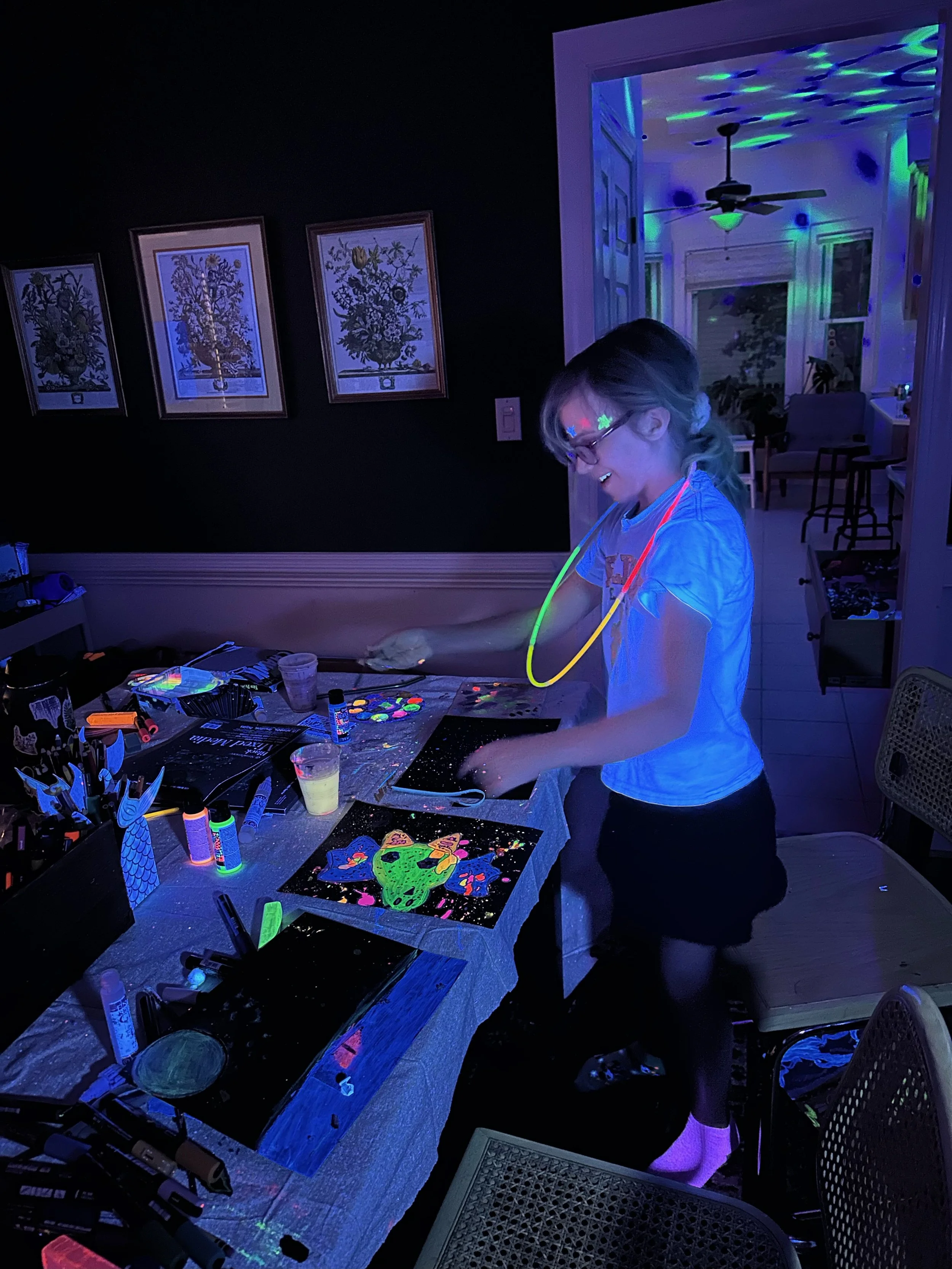 Our second event, "Let's Glow: Neon Nights," was an exploration of the vibrant world of glow-in-the-dark art. While the gallery of their creations is still in the works, here’s a sneak peek of our young artists at work!